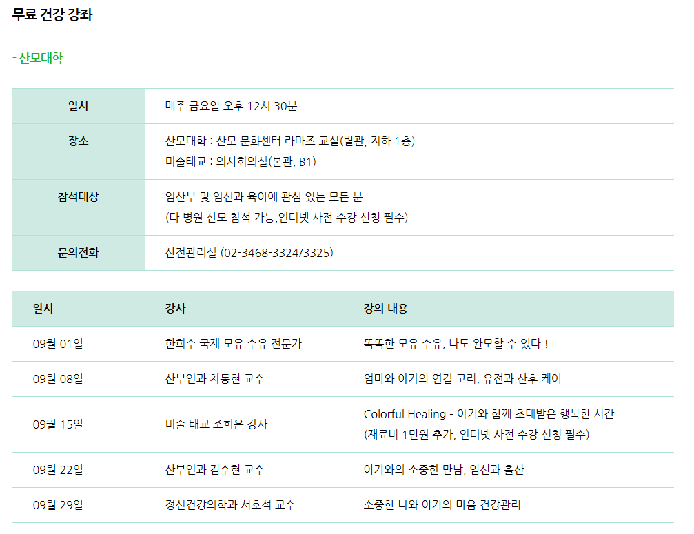 건강강좌는 무료/유료로 나누어 진행되고 있습니다.